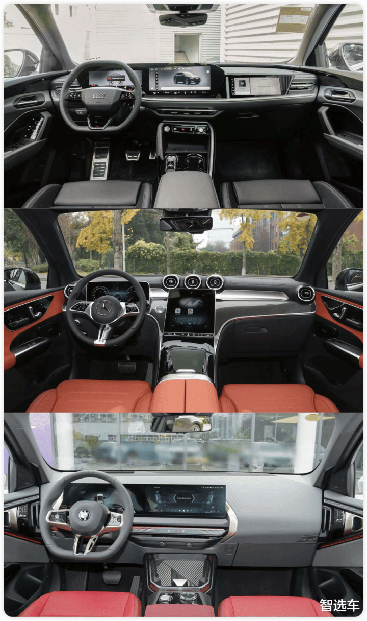 奔驰GLC是12.3英寸全液晶仪表+11.9英寸中控屏,加上奔驰在内饰设计方面的出色功底,因此豪华氛围营造的不错。而宝马X3则是12.3英寸全液晶仪表+14.9英寸中控屏组成的双联屏设计,虽然这种风格大家已经司空见惯,但放在宝马上也不算过时。